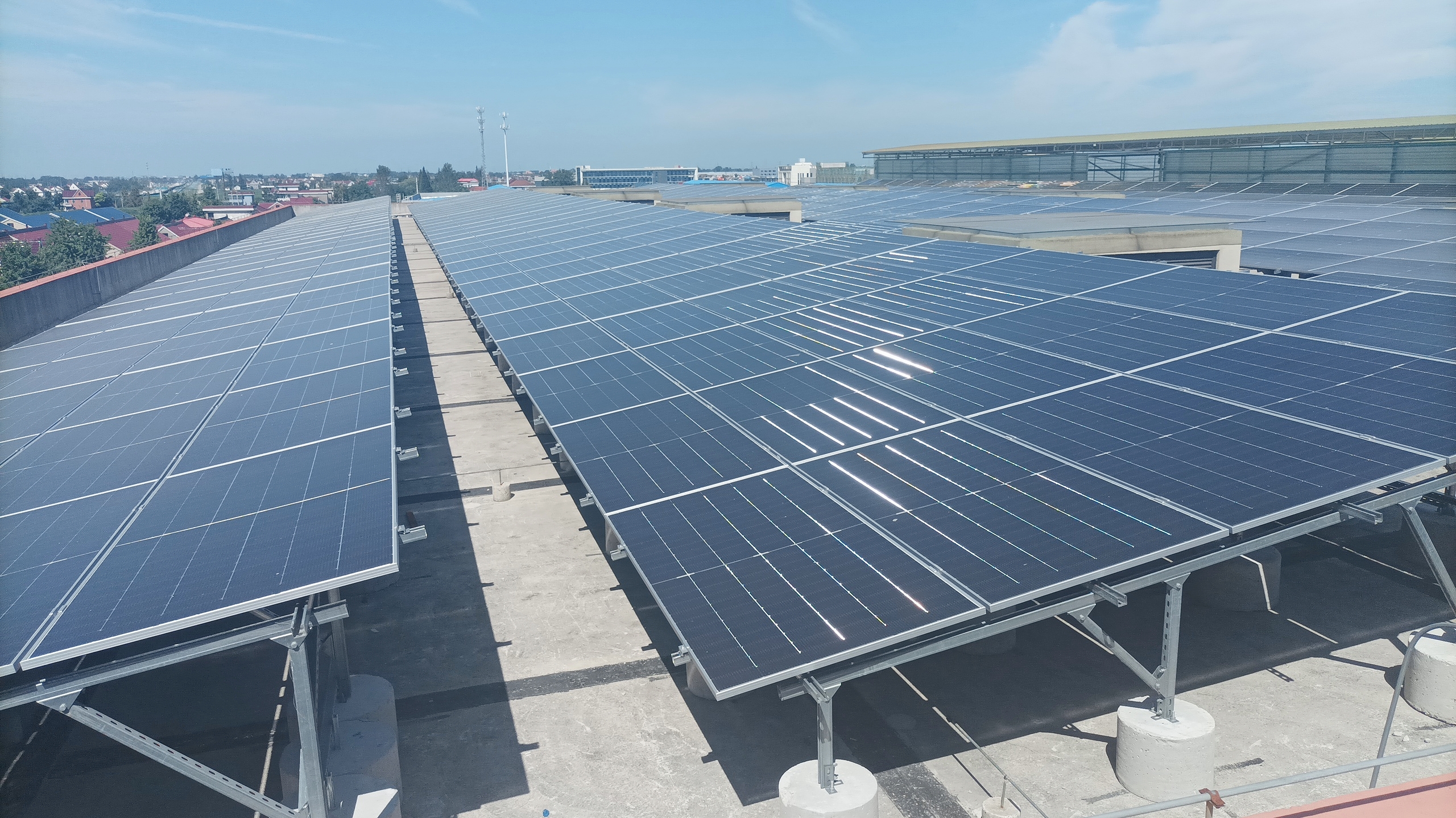 屋頂光伏發電,沒有噪音,沒有污染,減少了碳排放,能夠完成企業的節能減排指標